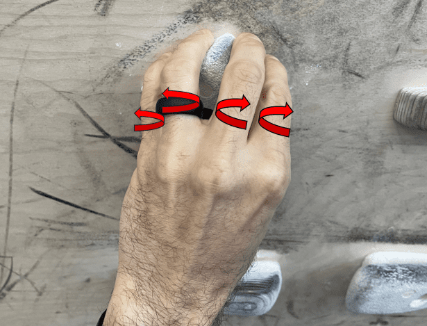 Image 4. Oddly shaped hold requiring fingers to spread and causing rotation at MCP joints.
