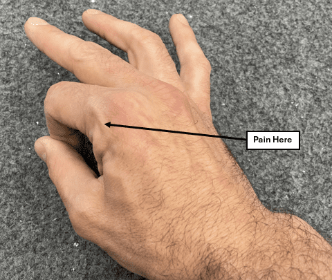 Image 5. Painful pinch test for pain on the thumb side of the MCP joint of the pointer finger.