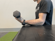 While each warm up should be specially tailored to each routesetter’s needs, such as paying extra attention to a body part that is known to experience injuries, there are also general exercises that can and should be performed by each routesetter prior to starting the forerunning process. They are listed below in order from the body part that was most commonly injured to the least. All of these exercises should be performed slowly and with control. You can adjust any weights as needed, but keep in mind that these should not be performed at your maximum difficulty. The last reps of each exercise can be slightly challenging, but you should still feel like you could do more reps.